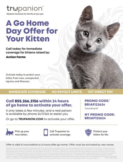 We offer 30 days Of complimentary health insurance for everything kitten you take home.